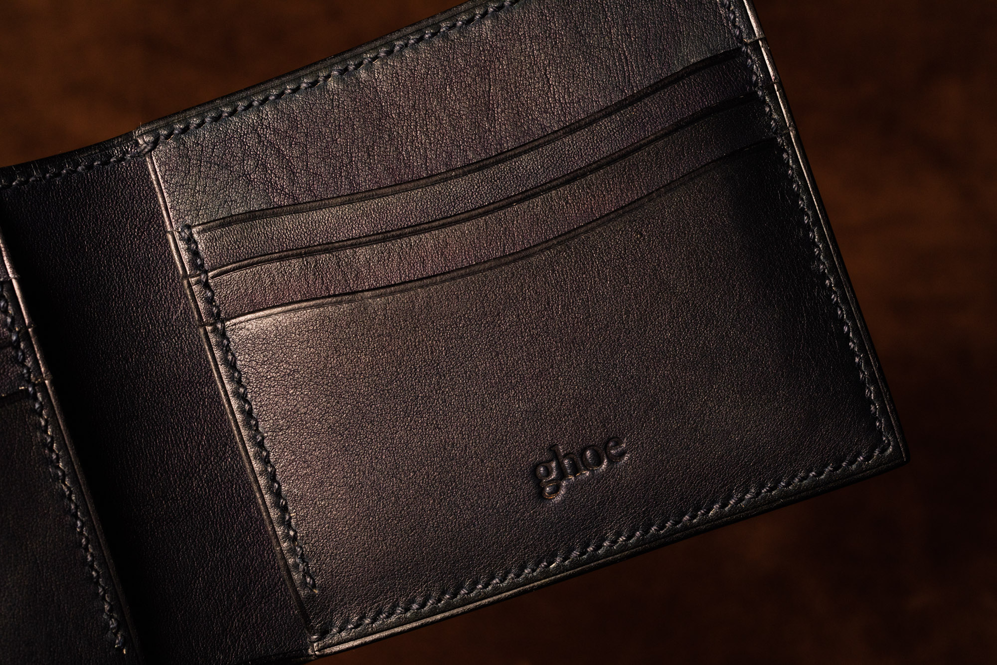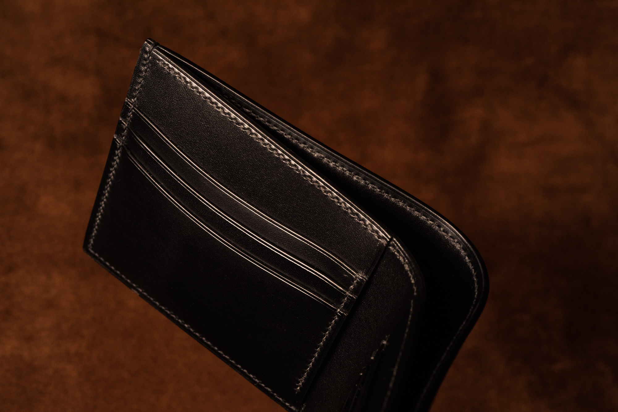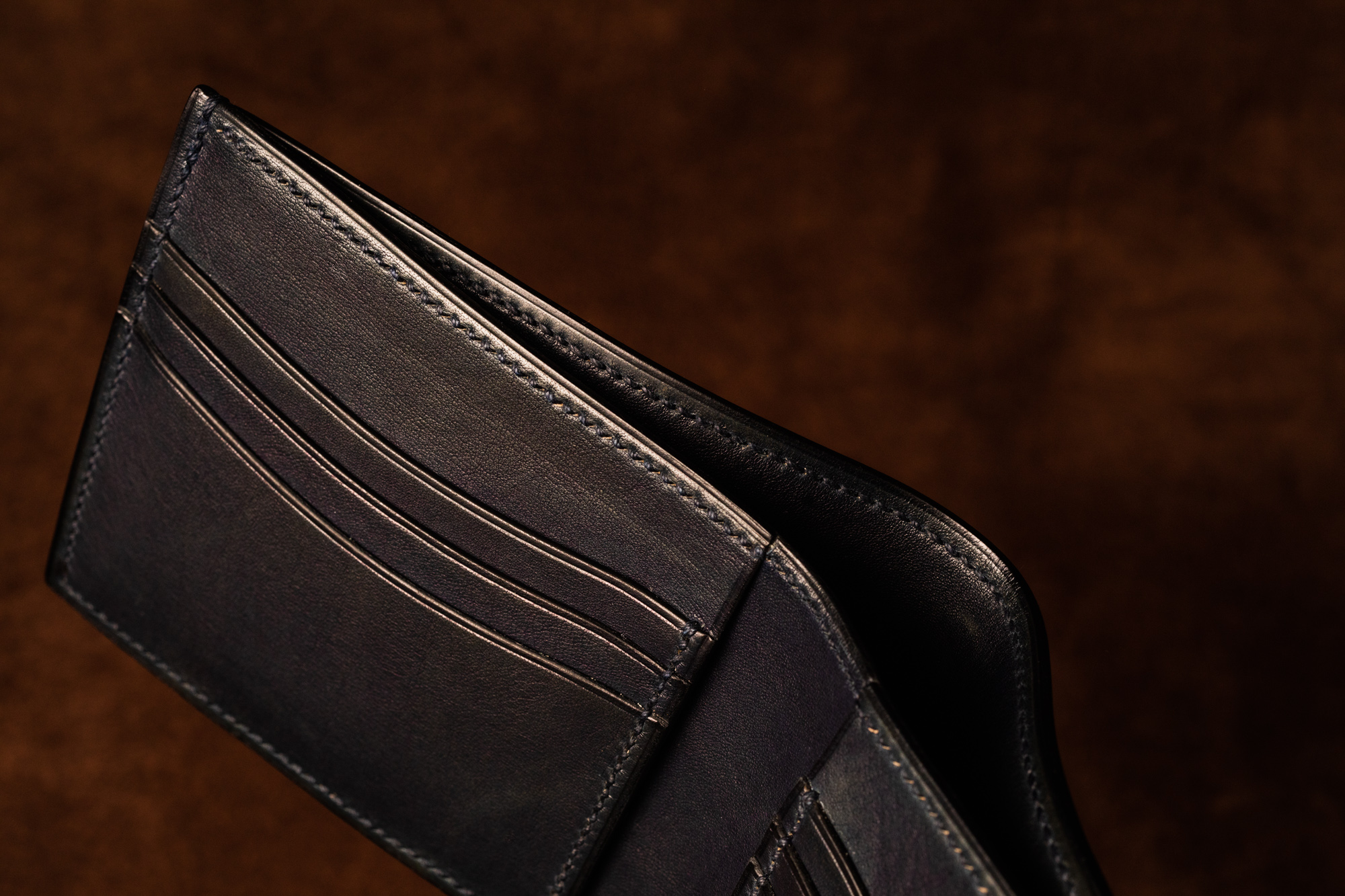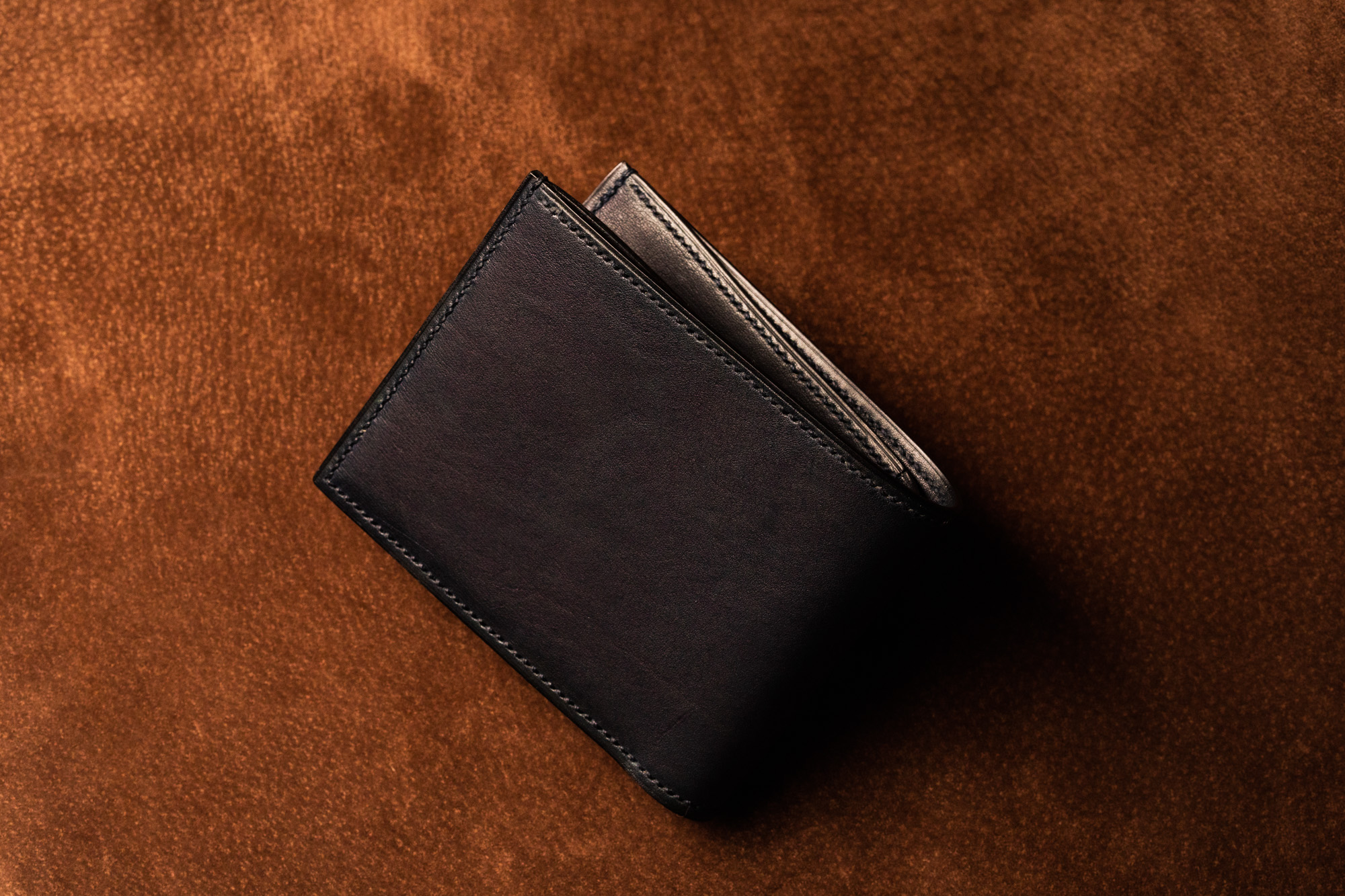 小銭入れのついていない二つ折り財布。「純札(じゅんさつ)」と呼ばれる形です。
